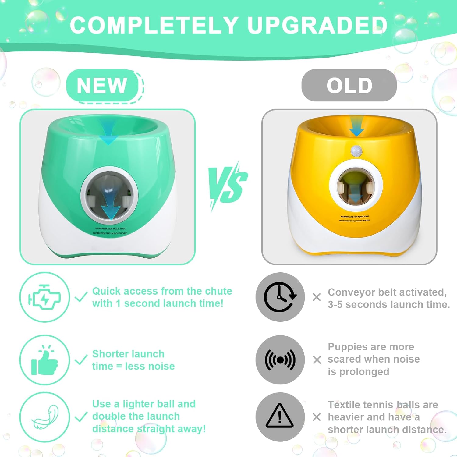 SOCO Automatic Ball Launcher for Dogs with Random Mode, 3 Settings to 45FT, Rechargeable Dog Ball Thrower with 4 ETPU Tennis Balls for Small Medium Breeds B-Green-4 balls(2.2")