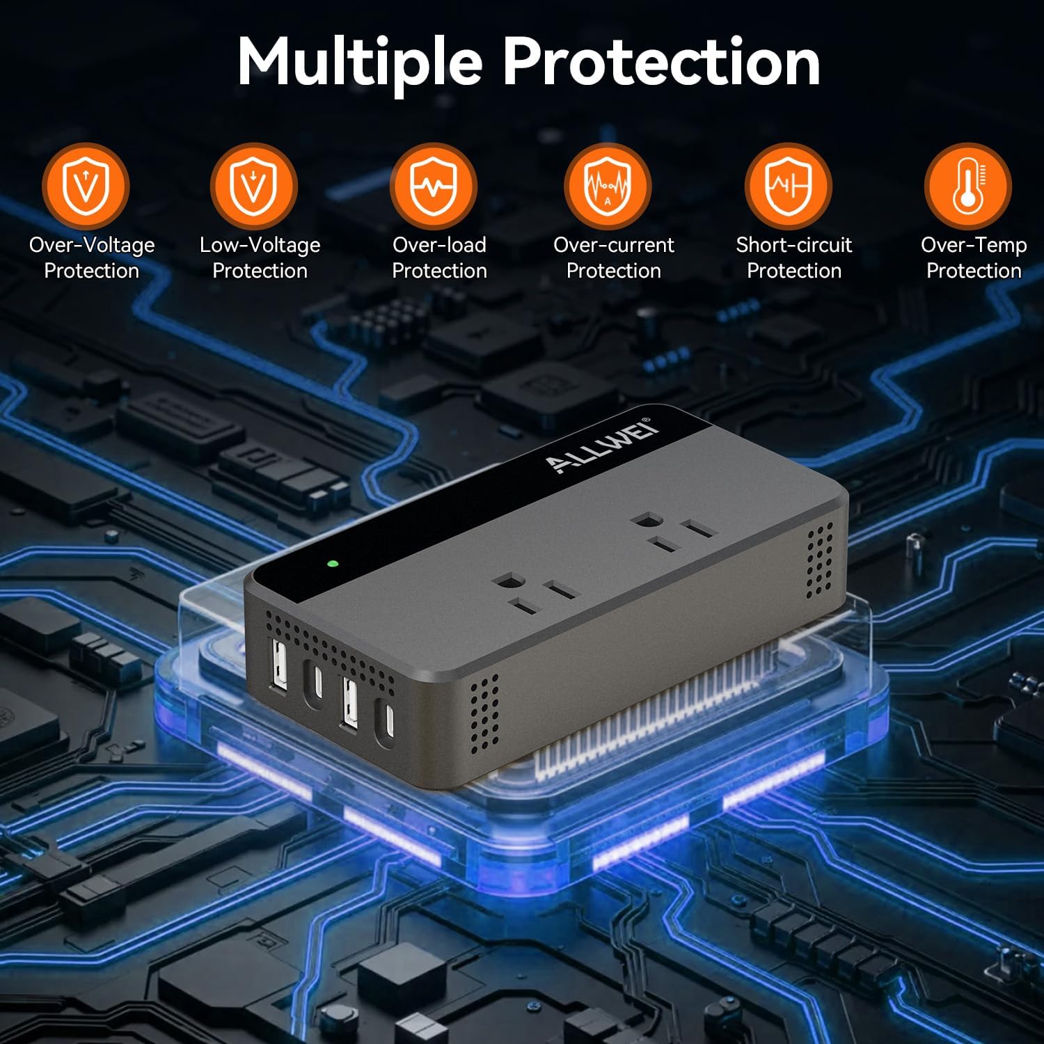 ALLWEI 200W Car Power Inverter, 12V DC to 110V AC Car Inverte with 4 USB Fast Charging Port(2xUSB A, 2xUSB C)- Car Charger Cigarette Lighter Adapter for Phone, Laptop and Small Devices on Road Trip