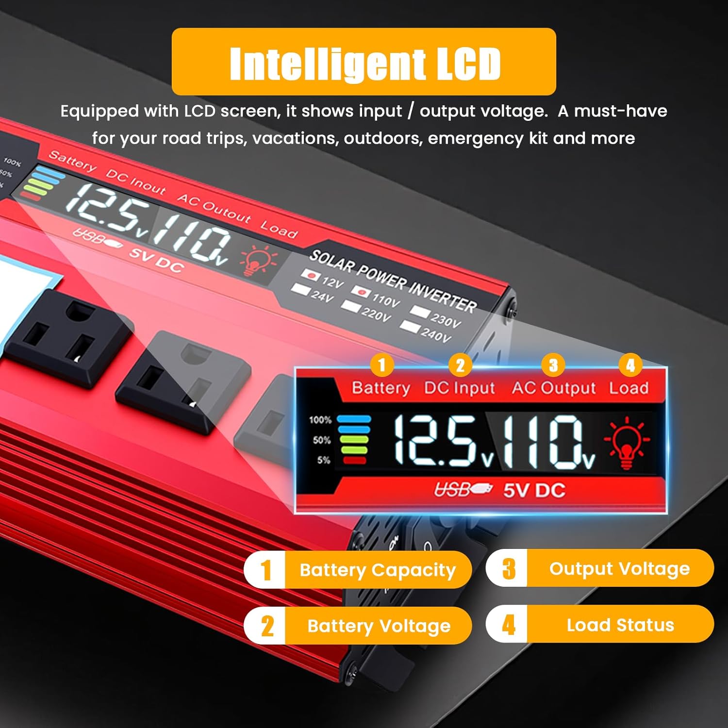 ALSO GO 1000W Power Inverter 12V DC Volt to 110V AC Car Inverter with LCD Screen Display, 3 AC Outlets, 4X 2.4A USB Port, Car Power Converter for Truck, Home, Vehicles, Laptop, Trip