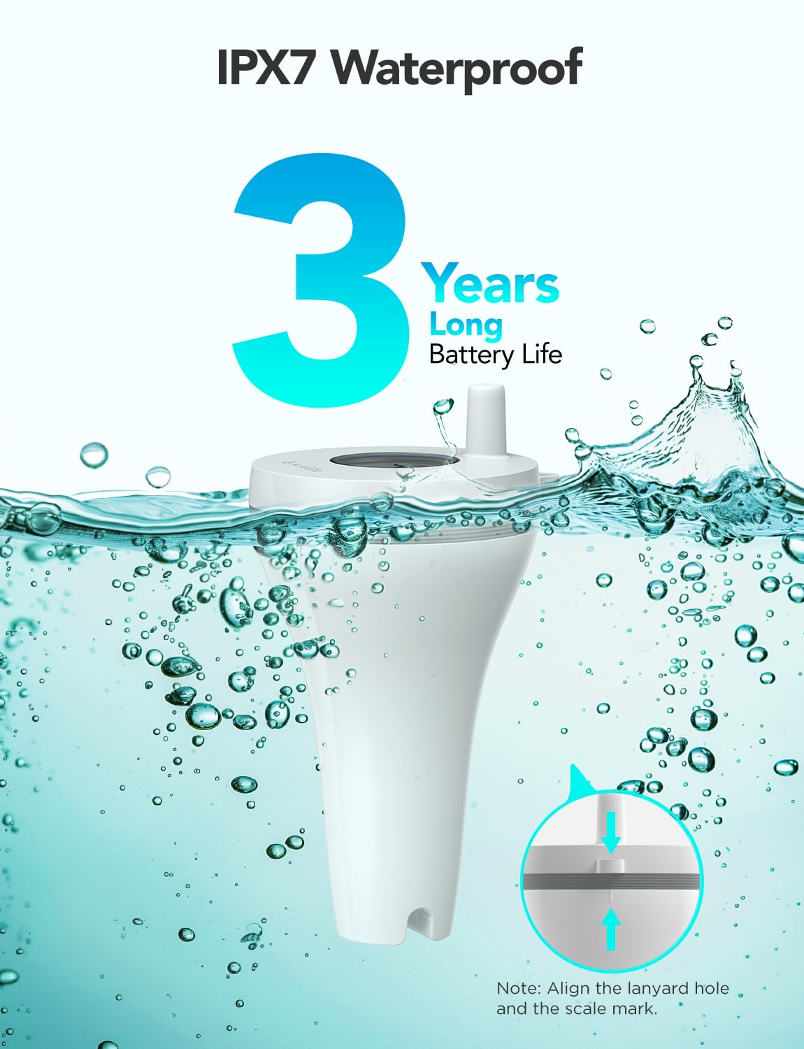 GoveeLife WiFi Pool Thermometer Wireless App Easy Read, Smart Digital Floating Pool Thermometer with IPX7 Waterproof, Notification Alert, Water Temperature Monitor for Swimming, Pond, Bath, Spa 1 Gateway + 1 Sensor