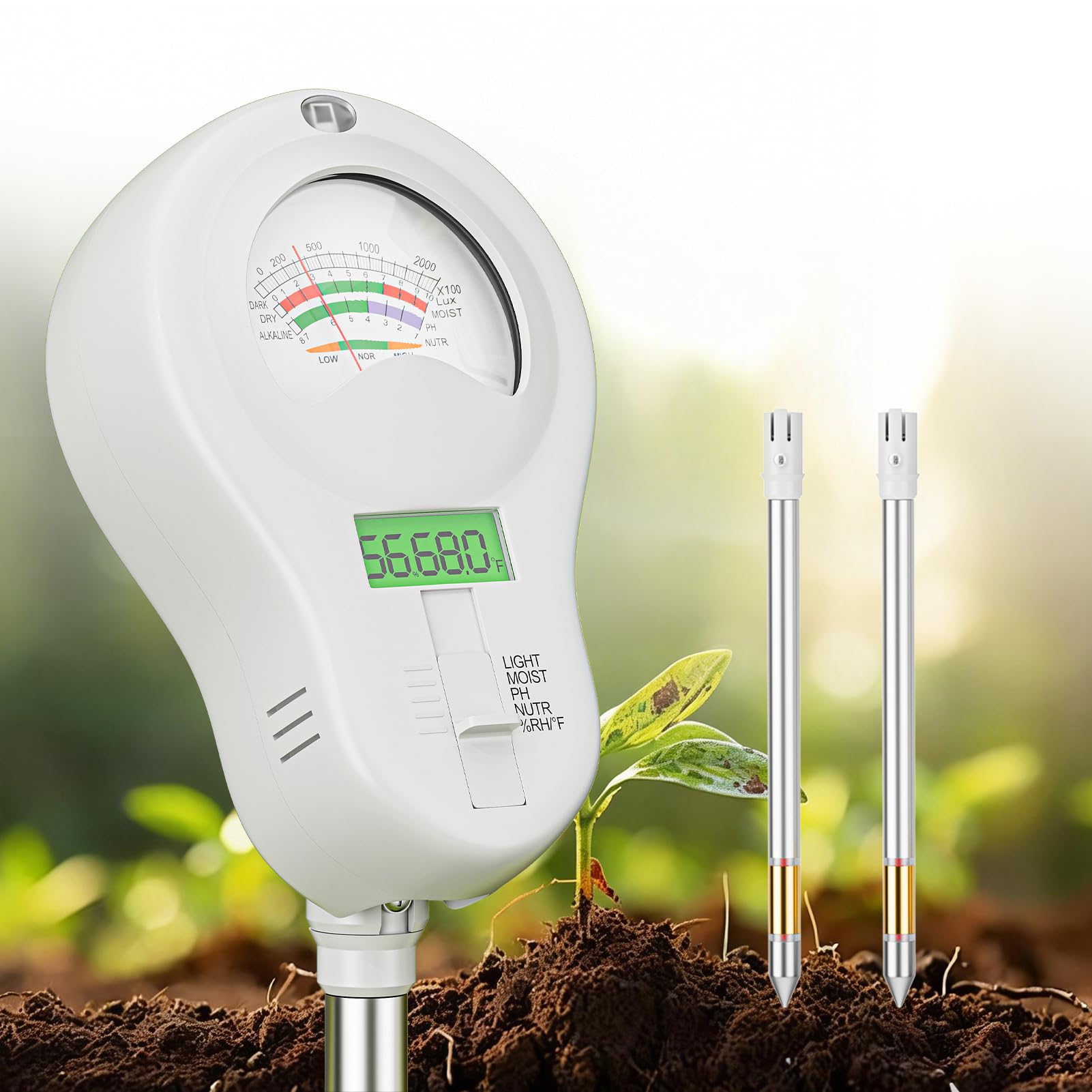 HSLGOVE Soil Test Kit, 7-in-One Soil Moisture Meter/Soil PH Meter/Fertility, Dual Screen Soil Tester w/Digital Soil Temp/Air Temp&Humidity for Plants Gardening,Lawn,Farm Indoor&Outdoor-Lvory White LvoryWhite