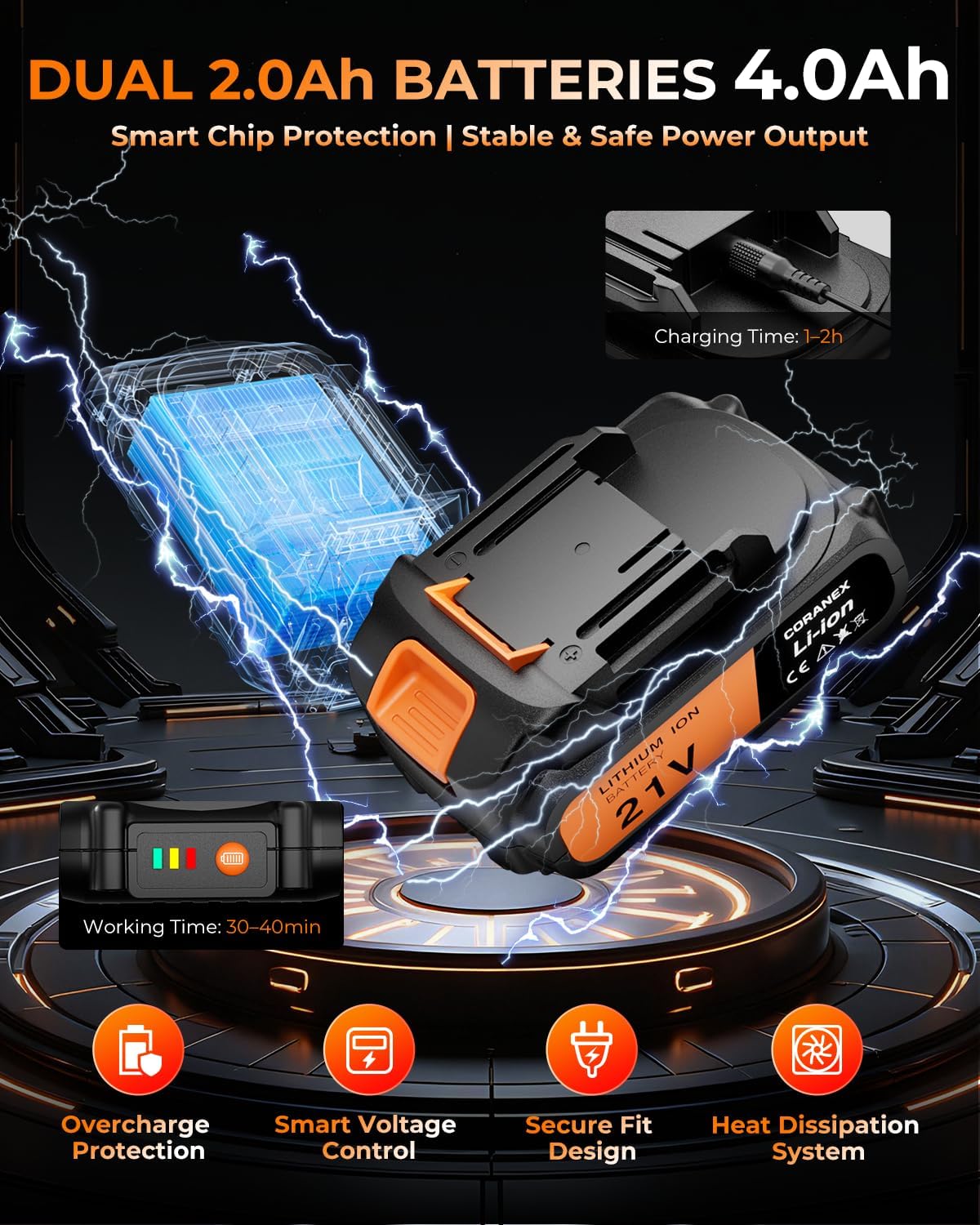 2.05'' / 56 mm Cordless Electric Pruning Shears | Longer Runtime | Brushless Motor | Anti-Slip Handle | Safety Switch | Ideal for Garden, Orchard & Tree Trimming