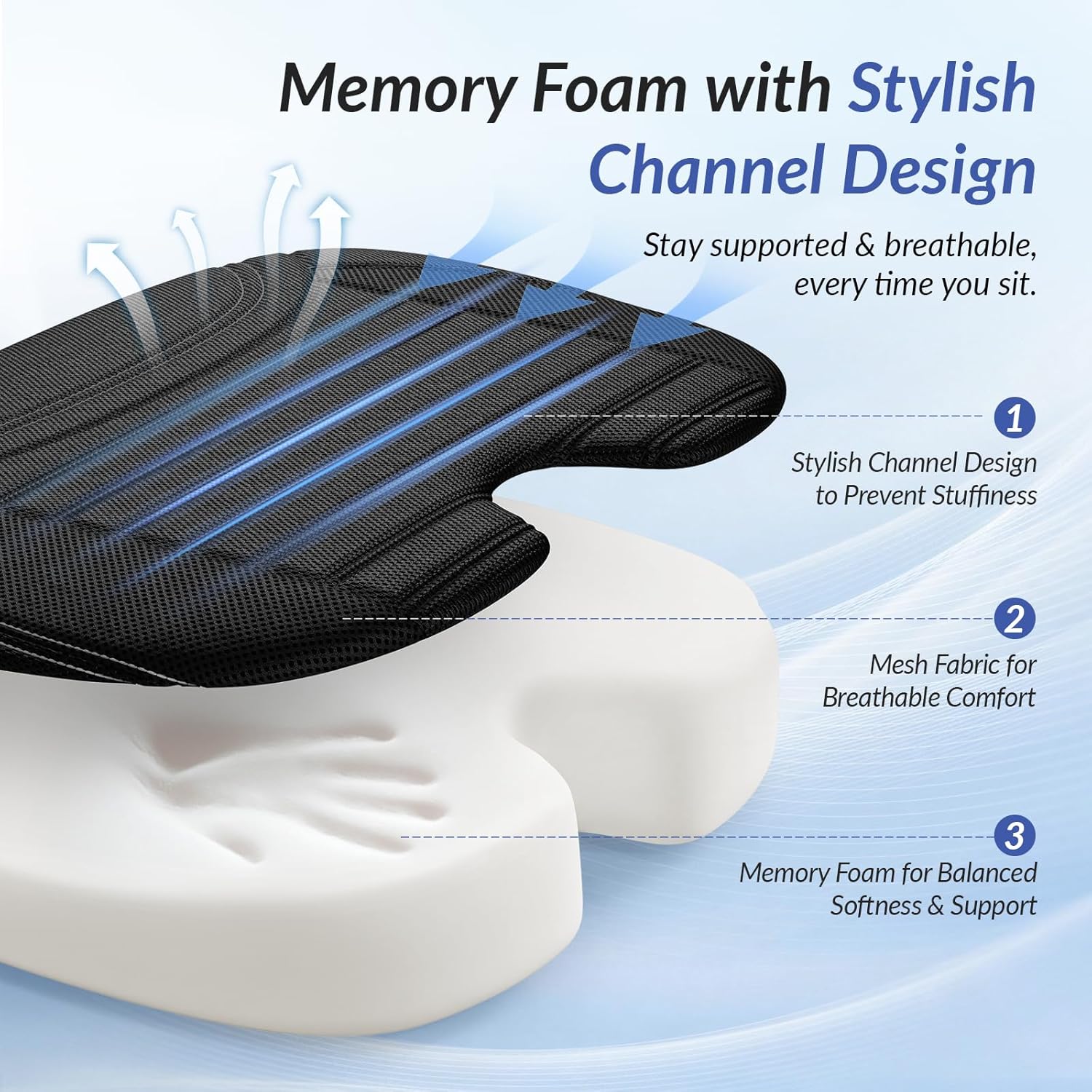 ZIKEE All-Season Car Seat Cushion for Comfortable & Safe Driving, Breathable Seat Cushion for Car with Ventilated Channel & Mesh Cover, Memory Foam for Sciatica, Tailbone & Back Pain Relief, Anti-Slip