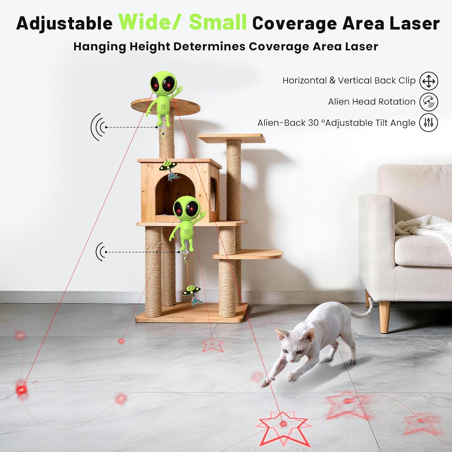 ORSDA Laser Cat Toys for Indoor Cats, 2 in 1 Interactive Automatic Dual Laser & Catnip UFO Dangler for Kitten Toys, Truly Random Trajectory Radar Motion-Activated, Rechargeable 4 Modes, Clamp Design Green
