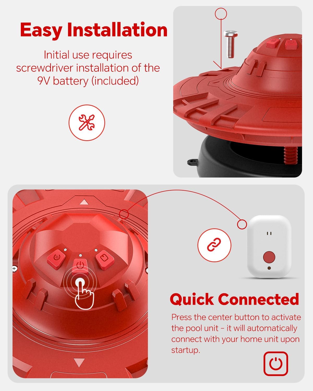 Pool Alarm, Floating Pool Safety Alarms for Inground & Above Ground Pools โ Loud 110dB Alert, Adjustable Sensitivity, Protection for Kids & Pets (Red+Black)