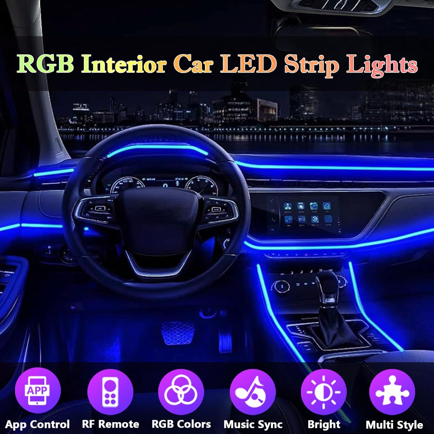 Interior Car LED Strip Lights, RGB 6 in 1 Ambient Lighting Kits with 315 inches Fiber Optic, 16 Million Colors Car Interior Lights with Wireless APP and Remote Control, Sync to Music