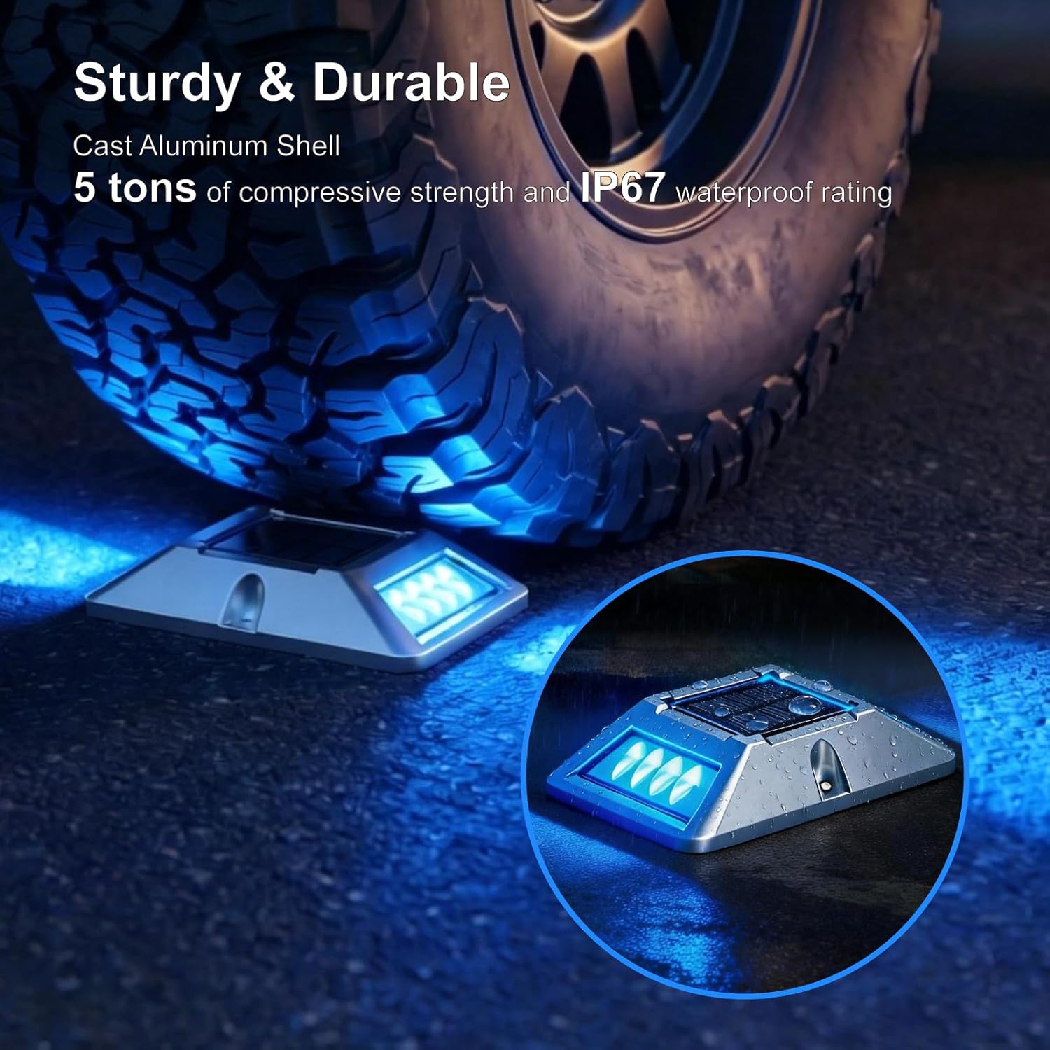 Solar Driveway Lights 12 Pack, 2 Colors in 1 Dock Lights Solar Powered IP67 Waterproof, Aluminum Marker LED Outdoor Deck Lights for Sidewalk Driveway Pathway(White/Blue) Blue & White 12 Pack