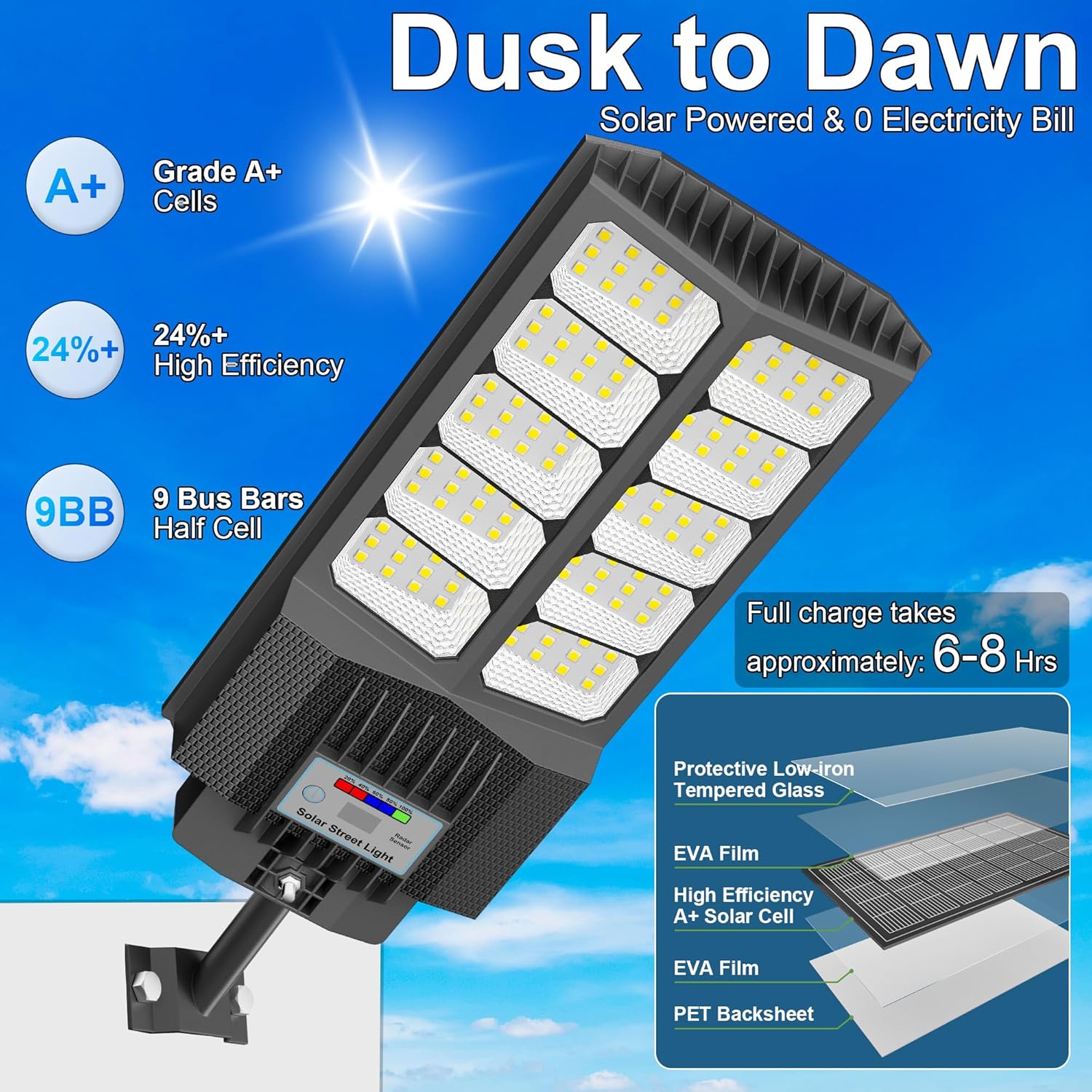 - โขLarge solar panel provides reliable charging even in reduced sunlight