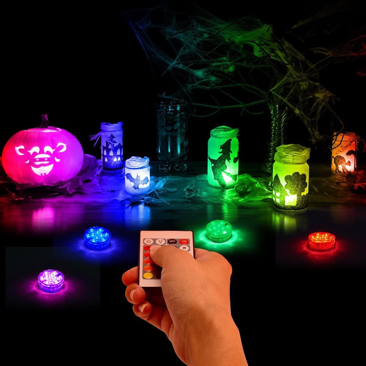 4Pack Submersible led Lights Waterproof Pool Lights Underwater with 16 Colors and Remote Control for Aquarium,Vase, Bath,Hot Tub, Halloween, Christmas,Swimming Pool and Party Decoration 16 Colors 4 Pack