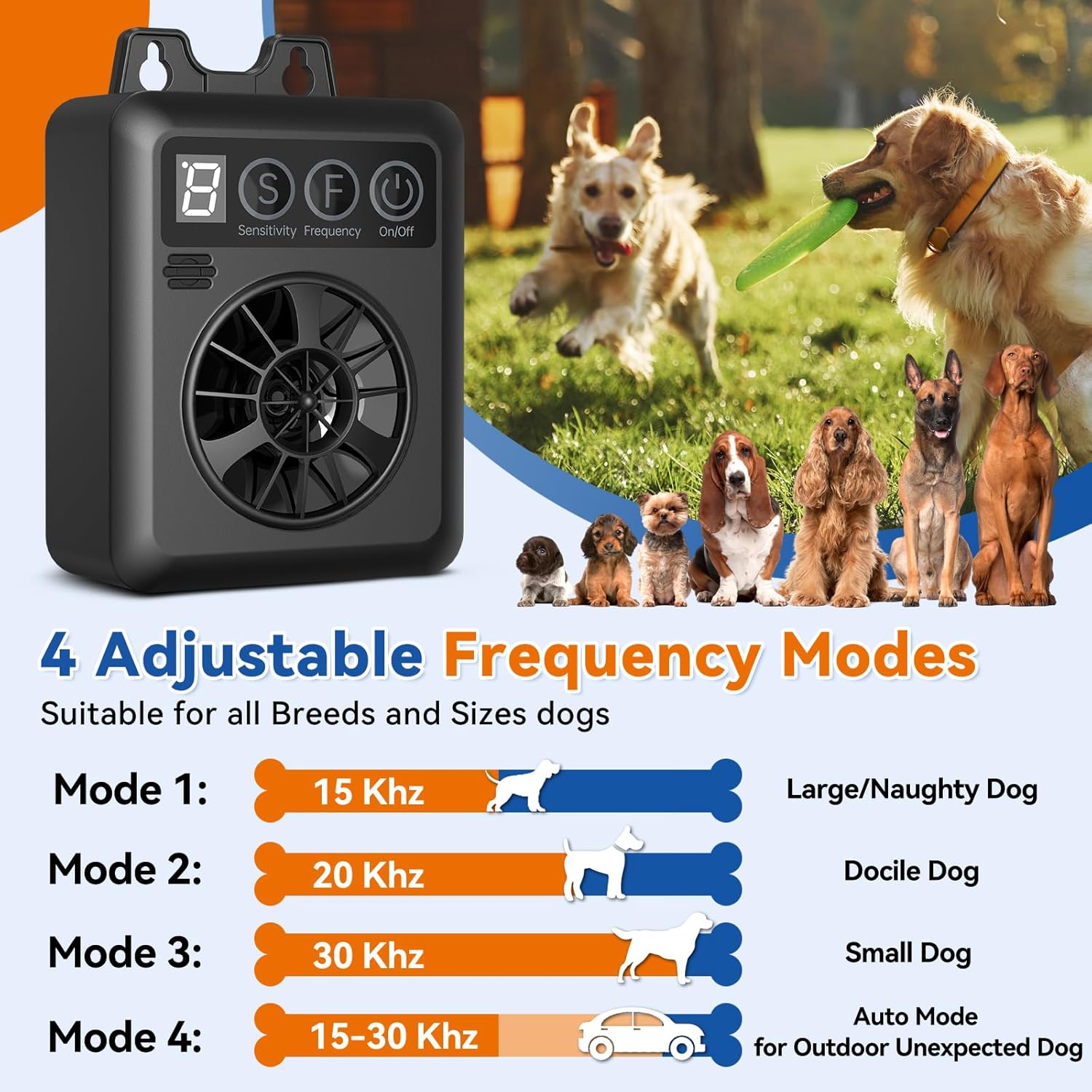 - โขMultiple sound settings for different dog temperaments